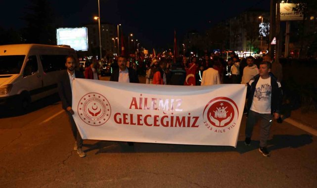 Kayseri Aile ve Sosyal Hizmetler İl Müdürlüğü ve Gençlik Spor İl Müdürlüğü ile birlikte Fener Alayı eşliğinde başlayan yürüyüş, 'En Büyük Ailemizin Türkiye'mizin 2025 Aile Yılı Kutlu Olsun' ve 'Ailemiz Geleceğimiz' yazılı afişleri ile Tuna Caddesi'nden başlayarak Cumhuriyet Meydanı'na kadar devam etti.