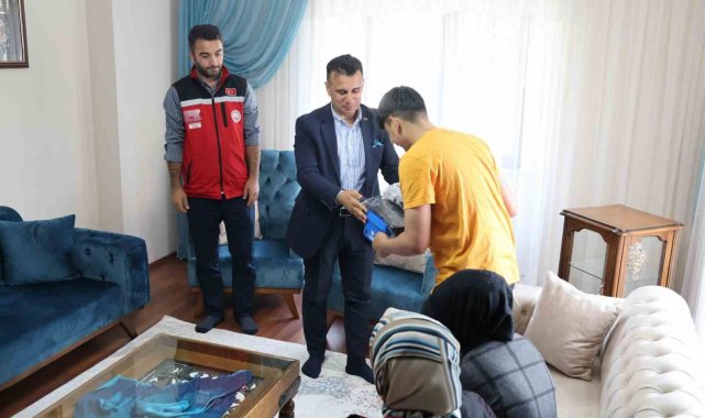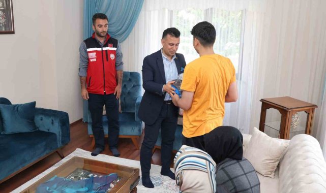 Aile yılı kapsamında bayram öncesi anlamlı ziyaret: 84 öğrenciye spor seti dağıtıldı.