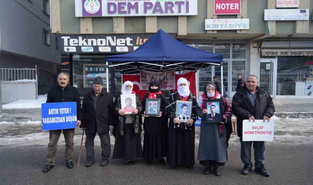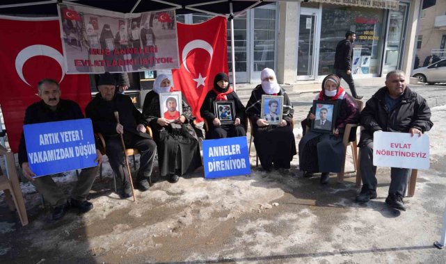 Muş'ta çocukları terör örgütü PKK tarafından kaçırılan aileler, kentte etkili olan soğuk havaya rağmen evlat nöbetine kararlılıkla devam ediyor. Çocuklarına kavuşma ümidiyle her hafta çarşamba günü DEM Parti il binası önünde bir araya gelen aileler, "Anneler direniyor" ve "Yeter artık evlatlarımızı bırakın" yazılı pankartlar açtı. Anne ve babalar, yıllardır hasretle bekledikleri çocuklarına teslim olmaları çağrısında bulundu.