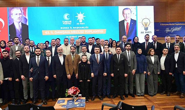 AK Parti Bursa İl Başkanlığı tarafından düzenlenen 63. İl Danışma Meclisi Toplantısı, Merinos Atatürk Kongre ve Kültür Merkezi'nde geniş katılımla gerçekleştirildi.