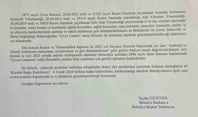 "Bölgemizde hem özel bir firmaya hem de Türk Kızılay'a ait kıyafet bağış kutuları bulunuyor. Bu kutular, kimi zaman geri dönüşüm amaçlı, kimi zaman ise ihtiyaç sahiplerine yardım için kullanılıyor. Şu anda bölgemizde Kızılay'a ait yaklaşık 100 adet kıyafet bağış kutusu var. Ancak belediye başkan yardımcısının imzasıyla gönderilen bir yazıyla, bu kutuların kaldırılması talep edildi ve bunun gerekli olduğu ifade edildi."