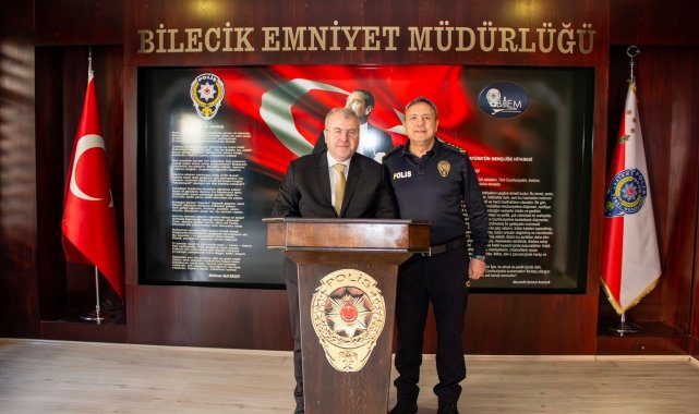Bilecik Milletvekili Halil Eldemir ve beraberindeki heyet İl Emniyet Müdürü Hakan Yılmaz'ı makamında ziyaret etti.