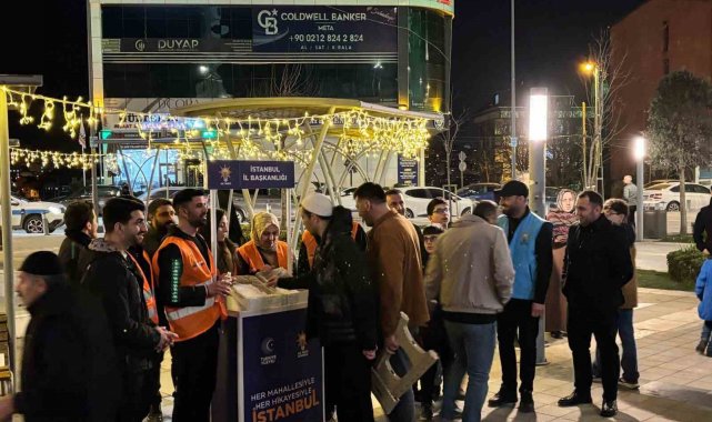 AK Parti İstanbul İl Başkanlığı koordinasyonunda yürütülen Ramazan çalışmaları kapsamında ilçe teşkilatları sahada aktif olarak faaliyetlerini sürdürüyor. Ramazan ayının manevi atmosferini ve dayanışma ruhunu İstanbullularla paylaşmak amacıyla gerçekleştirilen etkinlikler çerçevesinde, İstanbul'un dört bir yanında vatandaşlarla bir araya geliniyor. Program kapsamında İstanbul'un simgeleşmiş tarihi camilerinden mahallelerdeki yerel camilere kadar kentin farklı noktalarında teravih namazı sonrası vatandaşlara lokum, salep, çay ve su ikramı yapılıyor. Cami çıkışlarında kurulan mobil ikram stantları vatandaşlardan yoğun ilgi görüyor.