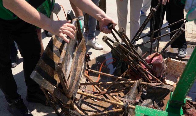 AK Parti İzmir Çevre, Şehir ve Kültür Başkanlığı tarafından, 5 Haziran Dünya Çevre Günü etkinlikleri kapsamında dalgıçlar eşliğinde eski Foça rıhtımında dip temizliği gerçekleştirilirken, denizden sandalyeler çıktı.