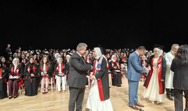 Saygı duruşunda bulunulması ve İstiklal Marşı'nın okunması ile başlayan mezuniyet törenine AK Parti Kayseri Milletvekili Sayın Bayar Özsoy, ERÜ Rektörü Prof. Dr. Fatih Altun, KAYÜ Rektörü Prof. Dr. Kurtuluş Karamustafa, protokol üyeleri, öğrenciler ve aileleri katıldı.
