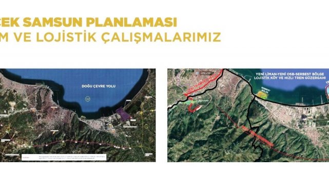 Samsun-Ankara Hızlı Tren Projesi'nin bitmesi ve yeni liman ile birlikte Samsun'un Türkiye'nin dünyaya açılan kapısı olacağını kaydeden Başkan Halit Doğan, "Samsun Taksi uygulamasına başlıyoruz. Şu anda deneme sürüşleri başladı. Samsun'a dışarıdan çok fazla insan geliyor. Bunlar her zaman duraklarda taksi bulamıyor. Samsun Taksi uygulamasını telefonuna indirerek bir portal üzerinden Samsun'daki taksicilere ulaştığı, ödemesini bu güvenli sistem üzerinden yapabildiği sistemi de taksici esnafımızla birlikte hayata geçiriyoruz. Mersin-Ankara Hızlı Tren Hattı bitti. Şimdi Ankara-Çorum Hattı devam ediyor. İnşallah Çorum-Samsun kısmını da bu dönem içerisinde bitirmek için büyük çaba sarf ediliyor. Ayrıca bu bölgede ulaşım planlarımızı yapıyoruz. Mevcutta Yeni OSB bu bölgede, BAYKAR üretim hattına başlayacak. Uluslararası otomotiv yatırımcılarının görüşüldüğü bir alan ayrıca ön tarafında da bir liman öngörüyoruz. Buradan hızlı tren hattını Lojistik Köy üzerinden hızlı tren güzergahındaki Samsun Şehir Hastanesi'ne kadar gelen hatla bağlayarak yükü bir şekilde Yeni OSB ve limana bağlamak, Mersin'den gelen yükü de Allah nasip ederse karayolu ile uğraşmadan boğazlardan gemilerin geçmek üzere 3 gün bekledikleri bir sistemden Samsun Limanı'ndan Avrupa'ya ve Ukrayna-Rusya'ya ticaretin olduğu bir gelecek Samsun hedefi ile çalışıyoruz" diye konuştu.