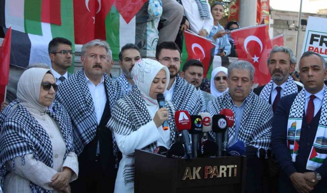 Gazze'de evlatlarını kaybeden anne-babaların zinciridir. Öksüz, yetim bırakılan çocukların zinciridir, ve insanlığını kaybetmeyen herkesin zinciridir. Biz; 'Yaralıları mı kurtaracaktım, şehitleri mi taşıyacaktım ya da bir torba un mu bulmaya çalışacaktım? Yemin ederim eve tek bir torba un getirip, çocuklarımın karnının doyacağını bilsem, ölüme razı olurum' diyen Gazzeli annenin sesi olmak için, bu sesi dünyaya duyurmak için buradayız. Bu zulmü görmezden gelen herkese soruyorum; kalbiniz nerede? Yüce Rabbimiz mealen 'Bir insanı öldüren, bütün insanlığı öldürmüş gibidir. Bir canı yaşatan, bütün insanlığı yaşatmış gibidir' buyuruyor. Gazze; bu ilahi kelamın sarsıcı bir imtihanıdır. Bizler İstanbul'dan, Hakkari'den, Trabzon'dan, Erzurum'dan ve Türkiye'nin 81 ilinden dünyanın dört bir yanındaki kadınlara, kız kardeşlerimize sesleniyoruz: Barış kadınla mümkün. Barışçıl bir şekilde yola çıkan ve uluslararası sularda haydut İsrail'in hukuksuz müdahalesine uğrayan Küresel Sumud Filosu'nu dünya öylece seyretti. Hamdolsun Türkiye; Cumhurbaşkanımız Recep Tayyip Erdoğan'ın kararlılığıyla bu adaletsizlik karşısında da sessiz kalmadı. Sadece kendi ülkesinin vatandaşlarını değil, 13 ülkeden 101 vicdan sahibi gönüllünün de ülkelerine güvenle dönmelerini sağladı. Bizler de ablukayı delmek ve insanlık onurunu korumak için mücadele eden kahramanların ülkemize dönüşlerinde oradaydık. Hepsinin dilinde aynı temenni vardı; 'Biz elimizden geleni yaptık, umarım Gazze'ye bir umut ışığı olabilmişizdir'. İşte bugün o umut sözleri de bu meydanda yankılanıyor. Biz bugün bütün kimliklerimizden sıyrılarak; sadece kadın kimliğimizle buradayız. Çünkü bu mesele ne dünyadaki rollerimizle, ne taşıdığımız unvanlarla, ne de sahip olduklarımızla ilgilidir, bu mesele insanlık meselesidir. Bugün Türkiye'den tüm dünyaya tek bir şey söylüyoruz; barış kadınla mümkündür" diye konuştu.