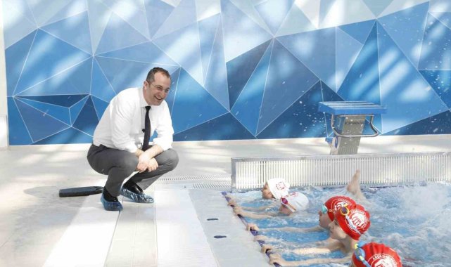 Akçaabat Belediye Başkanı Osman Nuri Ekim, Akçaabat Belediyesi tarafından Yarı Olimpik Yüzme Havuzu'nda düzenlenen yüzme kursunu ziyaret ederek eğitim alan kursiyer çocuklar ve aileleriyle bir araya geldi.