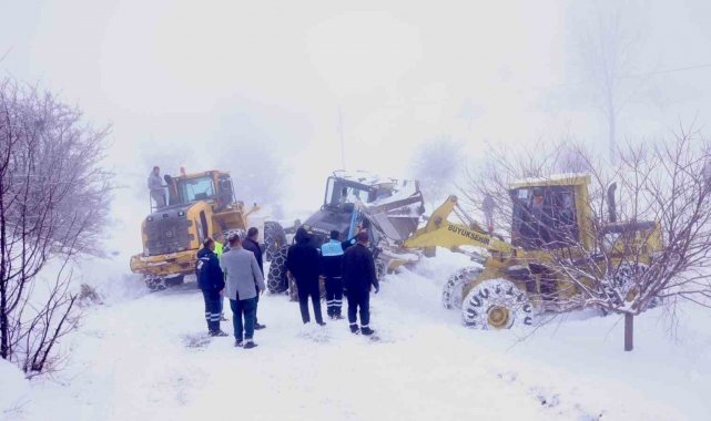 Akçadağ'da kar nedeniyle yoldan çıkan iş makinesi kurtarıldı
