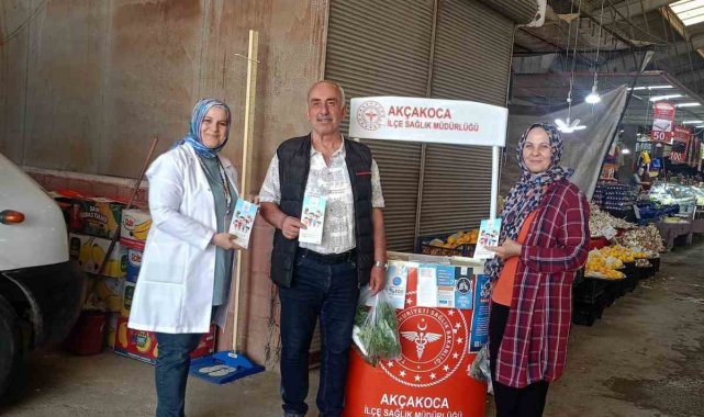 DÜZCE (İHA) – Akçakoca İlçe Sağlık Müdürlüğü ekipleri ilçe genelinde ideal kilonu öğren stantları açmaya devam ediyor.