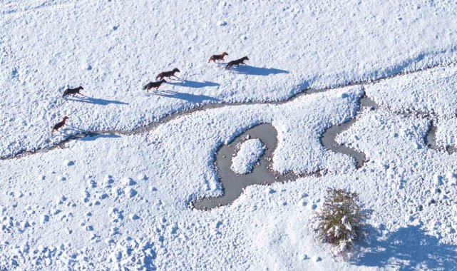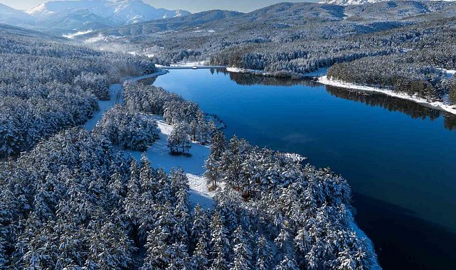 Afyonkarahisar'da dün yağan kar sonrası Akdağ Tabiat Parkı karlar altında kaldı. Fotoğraf Sanatçısı Çağrı Selek'in dron ile havadan görüntülediği park, karlar altındaki görüntüsü ile adeta masalsı manzaralar ortaya çıkardı. Kartpostalları aratmayan görüntülerde ağaçların ve gölün beyaz ile uyumu adeta renk cümbüşü ortaya çıkardı. Akdağ'ın zirvelerinin tamamen karla kaplandığı, eteklerinde ise sis ve güneşin birlikte oluşturduğu eşsiz manzara görenleri kendisine hayran bıraktı.
