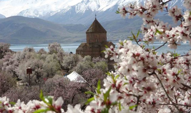 Van'ın Gevaş ilçesi sınırlarındaki Akdamar Adası, bu yıl 3'üncüsü düzenlenen Badem Çiçeği Festivali'ne ev sahipliği yaptı.