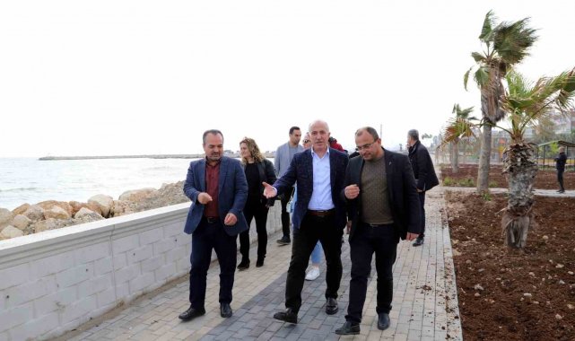 Akdeniz Belediye Başkanı Mustafa Gültak, 18 dönüm genişliğinde, üzerinde bin metrekarelik meydanı bulunan, 4 bin metrekare uzunluğunda yürüyüş ve bisiklet yolu ile birlikte vatandaşlar için sahile giriş alanı, kamelyalar ve bankların yerleştirildiği 'Karaduvar Sahili 2'nci Etap Park' projesi çalışmasını yerinde inceledi.