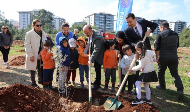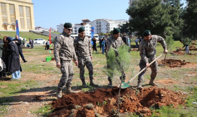 Açılış konuşmalarının ardından katılımcılar çam ağacı, zeytin ağacı ve defne ağacı fidanlarını toprakla buluşturarak can suyu verdiler.