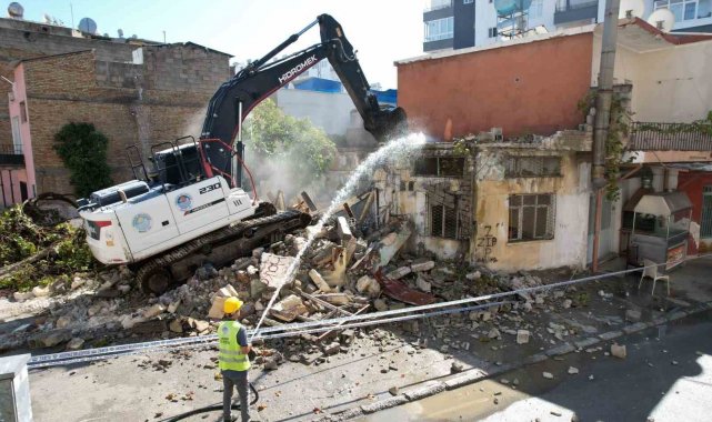 Bu kapsamda Fen İşleri Müdürlüğü ekipleri, Akdeniz Belediye Encümeni kararıyla Barış Mahallesi 4508 Sokakta bulunan, sahiplerince terk edilerek harabeye dönüşen bir yapının kontrollü yıkımını gerçekleştirdi. Yıkım öncesinde Zabıta Müdürlüğü ekipleri ile mahalle muhtarı Metin İlkyaz'ın da katılımıyla çevre güvenliği sağlandı, sokaklar şeritlerle kapatıldı. Binanın elektriğinin kesik olduğu tespit edilirken, ekskavatörle yapılan yıkım sırasında çevredeki yapılara zarar verilmemesi için büyük özen gösterildi. Toz oluşumunu engellemek amacıyla da arazözle tazyikli su sıkıldı.