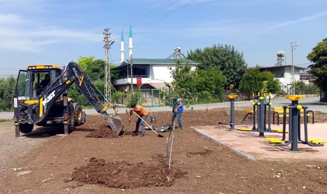 Alanın etrafına ağaçlar dikilerek çim tohumları atıldı