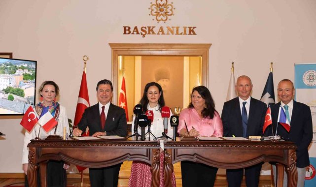 Muğla Büyükşehir Belediye Başkanı Ahmet Aras, Fransa İstanbul Başkonsolosu Nadia Fanton, Bastia Belediye Başkan Yardımcısı Mattea Lacave, Nice Belediyesi Başkan Yardımcısı ve Akdeniz Kentleri ve Bölgeleri Ajansı (AViTeM) Başkanı Agns Rampal'ın katılımıyla Muğla Büyükşehir Belediyesi Başkanlık Makamı'nda gerçekleştirilen imza töreni, iki şehir arasında yeni bir dönemin başlangıcı oldu.