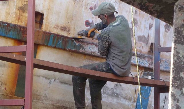 Karaduvar'dan Erdemli Balıkçı Barınağına tekne bakımı için gelen İzzet Çelik," Sezonumuz 15 Eylül'de açılacak. Bakımlarımızı hızlı bir şekilde yapıyoruz. Teknelerimizin işini bitirip denize indirerek ağ bakımlarını yaparak sezona yetiştirmeye çalışıyoruz "dedi.