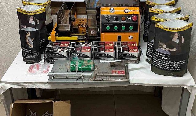 Manisa İl Jandarma Komutanlığı İstihbarat Şube Müdürlüğünce yapılan çalışmalar neticesinde, Akhisar ilçesi Medar Mahallesinde Z.T. (51/E) isimli şahsın iş yerinde KOM Şube Müdürlüğü ve Akhisar İlçe Jandarma Komutanlığı ekiplerince yapılan aramada, 1 adet elektronik sigara sarma makinası, 1 adet manuel sigara sarma makinası 8 bin 260 gram tütün, 10 bin 200 adet boş makaron, 1.280 adet dolu makaron ele geçirildi. Şüpheli şahıs hakkında adli tahkikata başlandığı açıklandı.