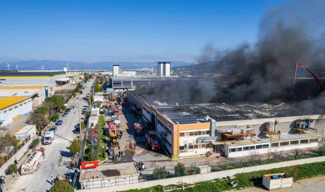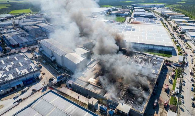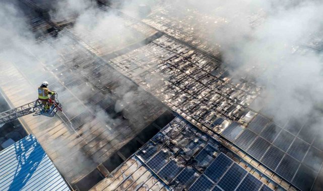 Dron ile havadan çekilen görüntülerde, yangının boyutu gözler önüne serildi. Alevlerin sadece çatıyı değil, çatıda kurulu olan güneş enerjisi panellerini ve fabrikanın iç kısımlarını da tamamen kullanılamaz hale getirdiği görüldü. İtfaiye ekiplerinin farklı noktalardan alevlere müdahalesi sürüyor.