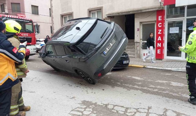 Akılalmaz kaza: Araç park halindeki otomobilin üzerine çıktı