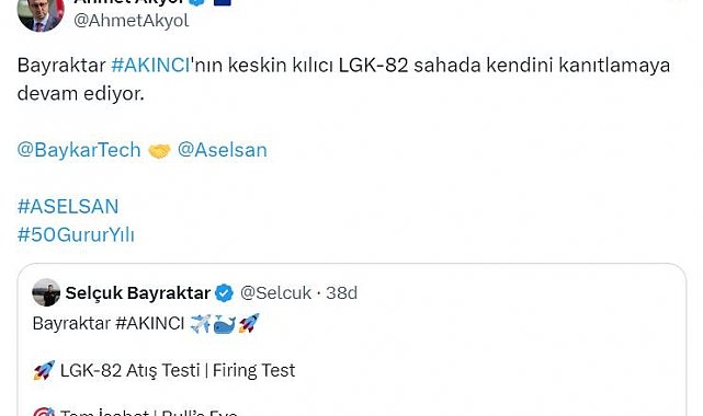Aselsan Genel Müdürü Ahmet Akyol ise "Bayraktar #AKINCI'nın keskin kılıcı LGK-82 sahada kendini kanıtlamaya devam ediyor" ifadelerini kullandı.