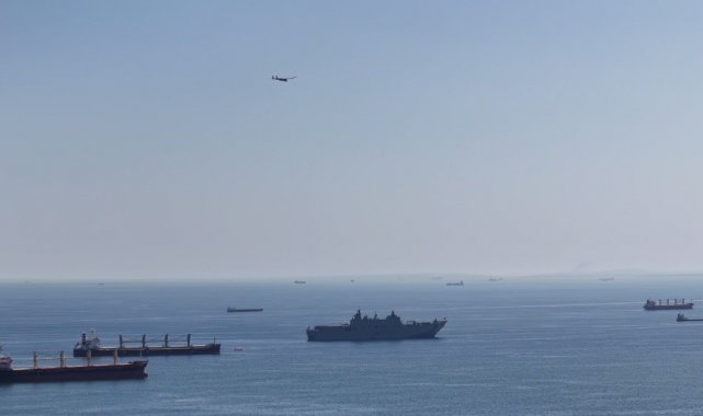 IDEF 2025-17'nci Uluslararası Savunma Sanayii Fuarı öncesi AKINCI TİHA ve TCG Anadolu gemisi Zeytinburnu açıklarında görüntülendi. AKINCI TİHA'nın prova uçuşu havadan görüntülendi.