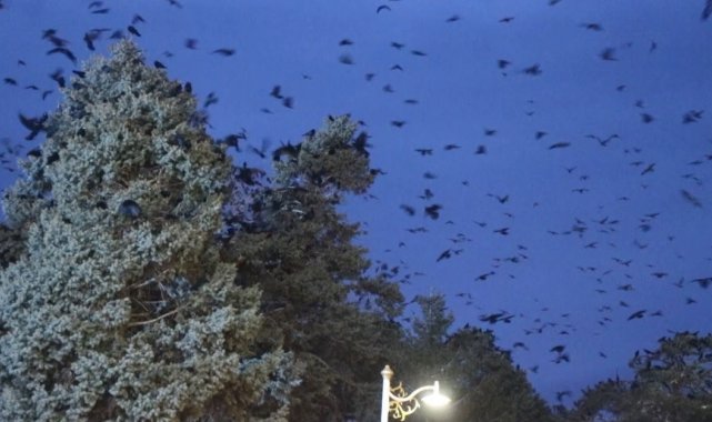 Akşam saatlerinde dikkat! Erzincan'da kargalar sokakları sardı