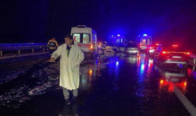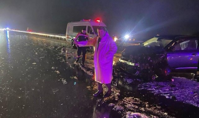 Ankara-Niğde Otoyolu'nda şiddeti dolu ve yağmur yağışıyla birlikte görüş mesafesinin düşmesi sonucu 12 aracın karıştığı zincirleme kaza meydana geldi. Kazada 10 kişi yaralandı.