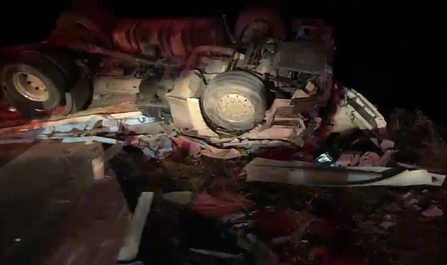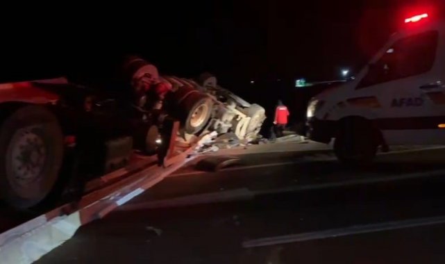 Aksaray'da sürücüsünün direksiyon hakimiyetini kaybettiği tır bariyerlere çarparak yola devrilirken, kabin altında kalan sürücü hayatını kaybetti.