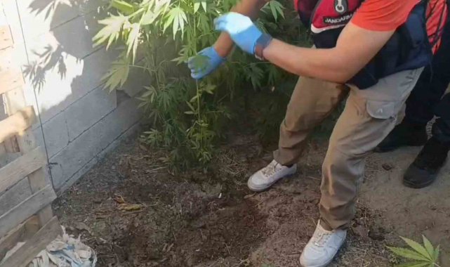 Aksaray'da evinin bahçesinde yasa dışı kenevir yetiştiren şahıs, jandarmanın dron destekli operasyonuyla yakalandı.