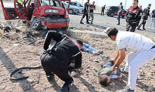 Aksaray'da hafif ticari araçla otomoblin çarpıştığı kazada ilk belirlemelere göre 1 kişi öldü 8 kişi de yaralandı. Yaralıların refüje savrulduğu olay yerinde saglık ekipleri zamanla yarışırken, yaralılar ambulanslarla hastaneye kaldırılıyor.