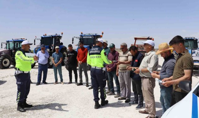 Aksaray'da jandarma tarafından, traktörlerin karıştığı trafik kazalarının önlenmesi amacıyla çiftçilere ve traktör sürücülerine yönelik eğitim verildi, römorklara reflektör takıldı.