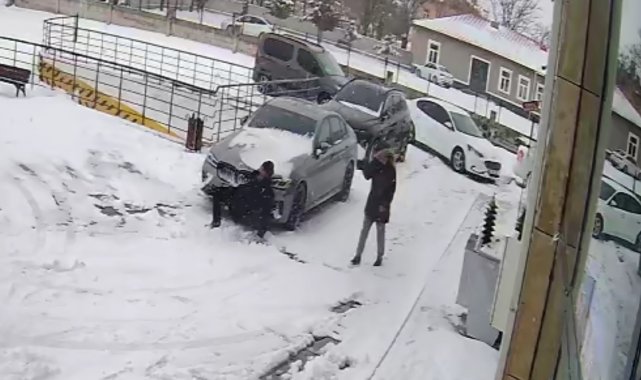 Aksaray'da karda kayıp düşenler kameralara yansıdı