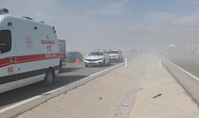 Aksaray'da kum fırtınası nedeniyle meydana gelen kazada 5 araç çarpıştı. Kazada ilk belirlemelere göre 8 kişi yaralanırken, Aksaray-Konya karayolu yaklaşık 1 saat trafiğe kapandı.