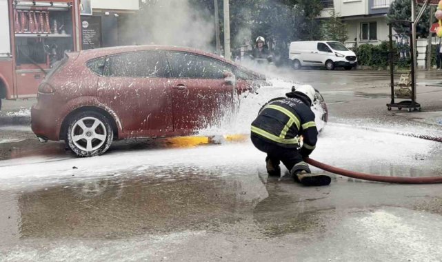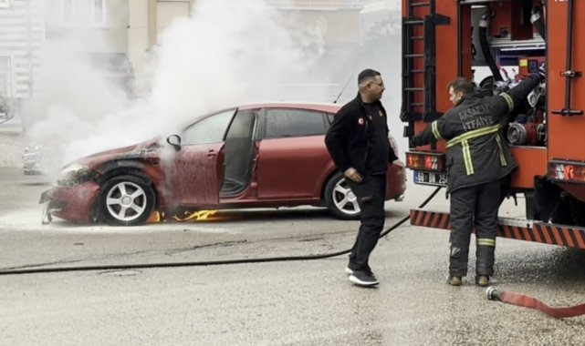 Aksaray'da seyir halindeyken yanmaya başlayan otomobil alevler içinde kaldı. Yangın önce vatandaşların yangın tüpüyle, sonra da itfaiyenin müdahalesiyle söndürüldü.