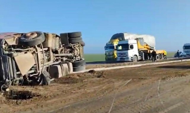 Aksaray'da kontrolden çıkan tırın devrilmesi sonucu sürücü yaralandı.