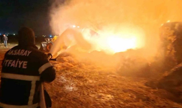 Yangın, saat 20.00 sıralarında Aksaray'ın Hamidiye Alaca Mahallesi arkasında bulunan boş tarım arazisindeki mandırada çıktı. Edinilen bilgiye göre, bir üreticiye ait mandıradaki saman balyalarının bulunduğu alanda bilinmeyen bir nedenden yangın çıktı. Dumanları fark eden mahalle sakinleri durumu 112 Acil Çağrı Merkezine bildirdi. İhbar üzerine olay yerine çok sayıda itfaiye ekibi sevk edildi. Bir balyada çıkan yangın kısa sürede tüm balyaları sardı. Bir taraftan itfaiye ekipleri diğer yandan iş makineleriyle yangına müdahale edildi. Yangın ve müdahale anları dron ile anbean görüntülenirken, yangında yaklaşık 70 ton saman balyası yanarak kül oldu. Polis ekiplerinin de güvenlik önlemi aldığı yangın mahallinde söndürme çalışmaları devam ediyor.