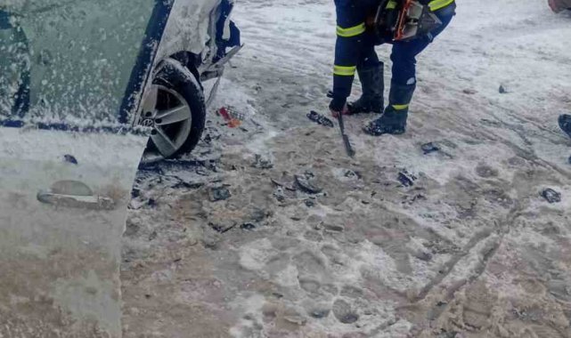 Aksaray'da kar yağışı nedeniyle bariyerlere çarpan otomobile bir başka otomobilin çarpması sonucu meydana gelen trafik kazasında 3 kişi yaralandı.