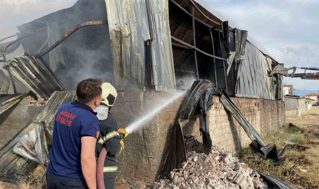 Aksaray'da yapı malzemeleri deposunda çıkan yangın paniğe neden olurken, milyonlarca lira değerindeki plastik malzemeler kül oldu.