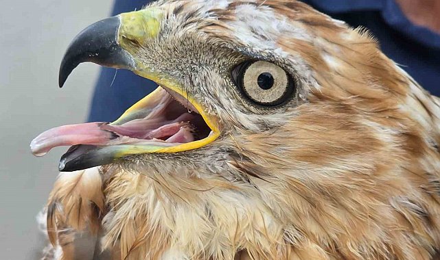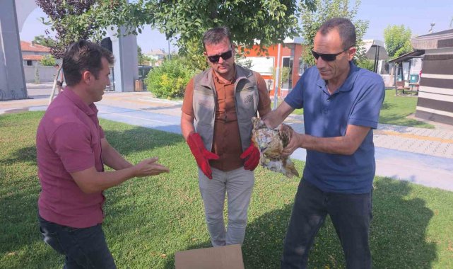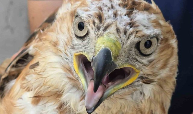 Aksaray'ın Eskil ilçesinde nesli tehlike altında bulunan kızıl şahin, Tuz Gölü'nde yaralı halde bulundu.