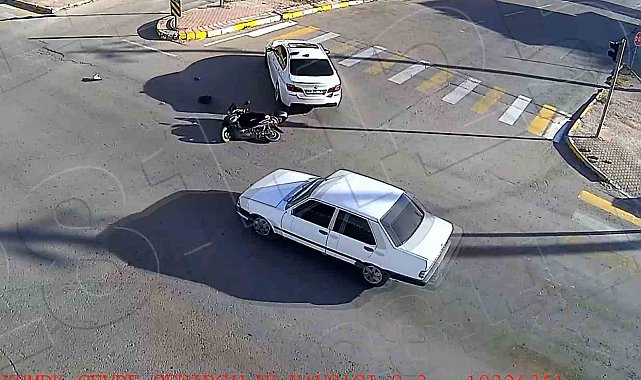 Fatih Mahallesi Alparslan Türkeş Bulvarında yaşanan kazada da motosiklet ile otomobilin çarpışması yansıdı Kent Güvenlik Yönetim Sistemi kameralarına. Motosiklet sürücüsünün yaralandığı kazada otomobilin motosikleti fark etmesi ve kaçmaya çalışması da görünüyor.