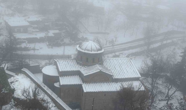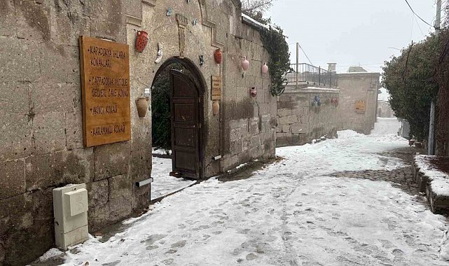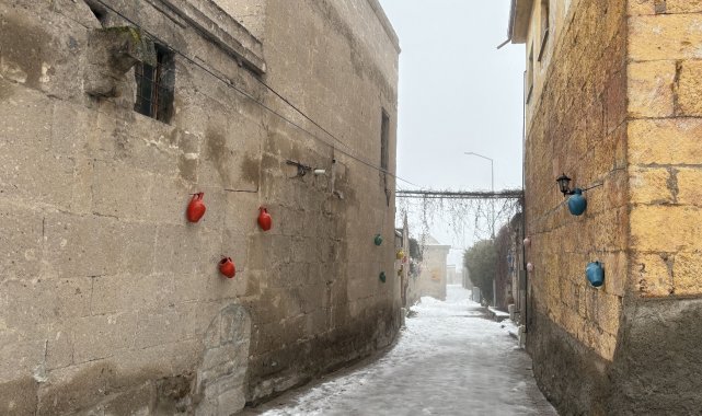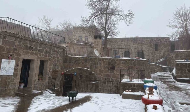 Aksaray'ın yüksek kesimlerinde etkili olan kar yağışı 2 gündür devam ederken, tarihi mekanlarıyla yerli ve yabancı turistlerin ilgi odağı olan Güzelyurt ilçesi de beyaza büründü.