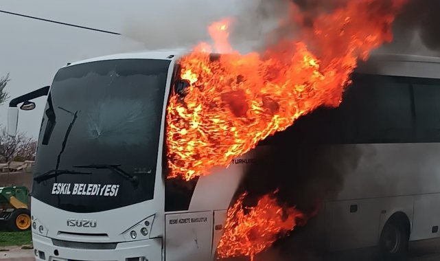 Aksaray'da 25 lise öğrencisinin bulunduğu Eskil İlçe Belediyesine ait servis midibüsü seyir halindeyken alevler içinde kaldı. Faciadan dönülen yangında 25 öğrenci güçlükle dışarı çıkabildi.
