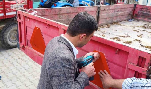 Konya'nın Akşehir İlçe Jandarma Komutanlığı ve Akşehir Ziraat Odası işbirliğiyle trafik güvenliğini artırmak ve traktör kazalarını önlemek amacıyla Ilıcak Mahallesi'nde çiftçilere yönelik bilgilendirme çalışmaları yapıldı ve traktör römorklarına reflektör takıldı.