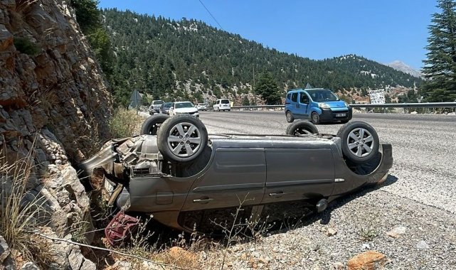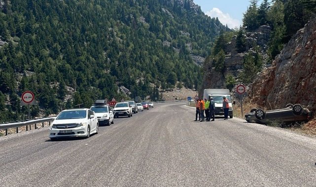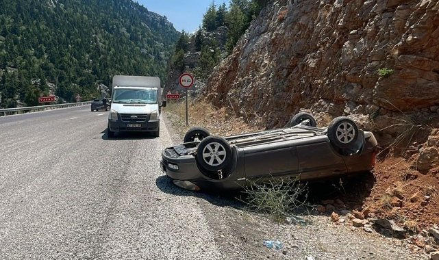 Akseki'de otomobil yoldan çıkıp takla attı: 2 yaralı