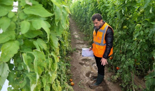 Aksu'da afetten zarar gören seralarda hasar tespiti yapıldı