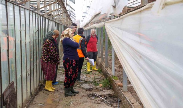 Antalya'nın Aksu ilçesinde fırtına ve şiddetli yağışların ardından oluşan sel felaketinde zarar gören seralarda hasar tespit çalışmaları devam ediyor. Büyükşehir Belediyesi, tespitlerin tamamlanmasının ardından, vatandaşların mağduriyetlerinin giderilmesi amacıyla hızla hareket edip, gerekli desteği sağlayacak.