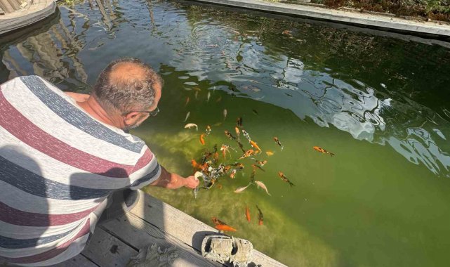 Antalya'nın İbradı ilçesi Ürünlü mahallesinde oturan Selami Bozkurt, çocukluğundaki akvaryum sevgisini yüzme havuzuna taşıdı. Bahçesine kurduğu 10x4 ebadındaki havuza bıraktığı 150 akvaryum balığına gözü gibi bakan Bozkurt, balıkları kendi elleriyle besliyor.