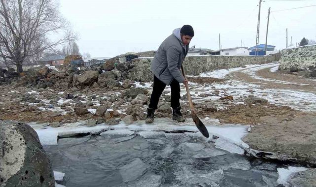 Kars'ın Akyaka ilçesinde etkili olan dondurucu soğuklar hayatı olumsuz yönde etkiliyor. Geceleri eksi 15 derecelere kadar düşen hava sıcaklıkları, bölgede bulunan dereleri dondurdu. Çiftçiler, hayvanlarının su ihtiyacını karşılamak için yoğun çaba gösteriyor.